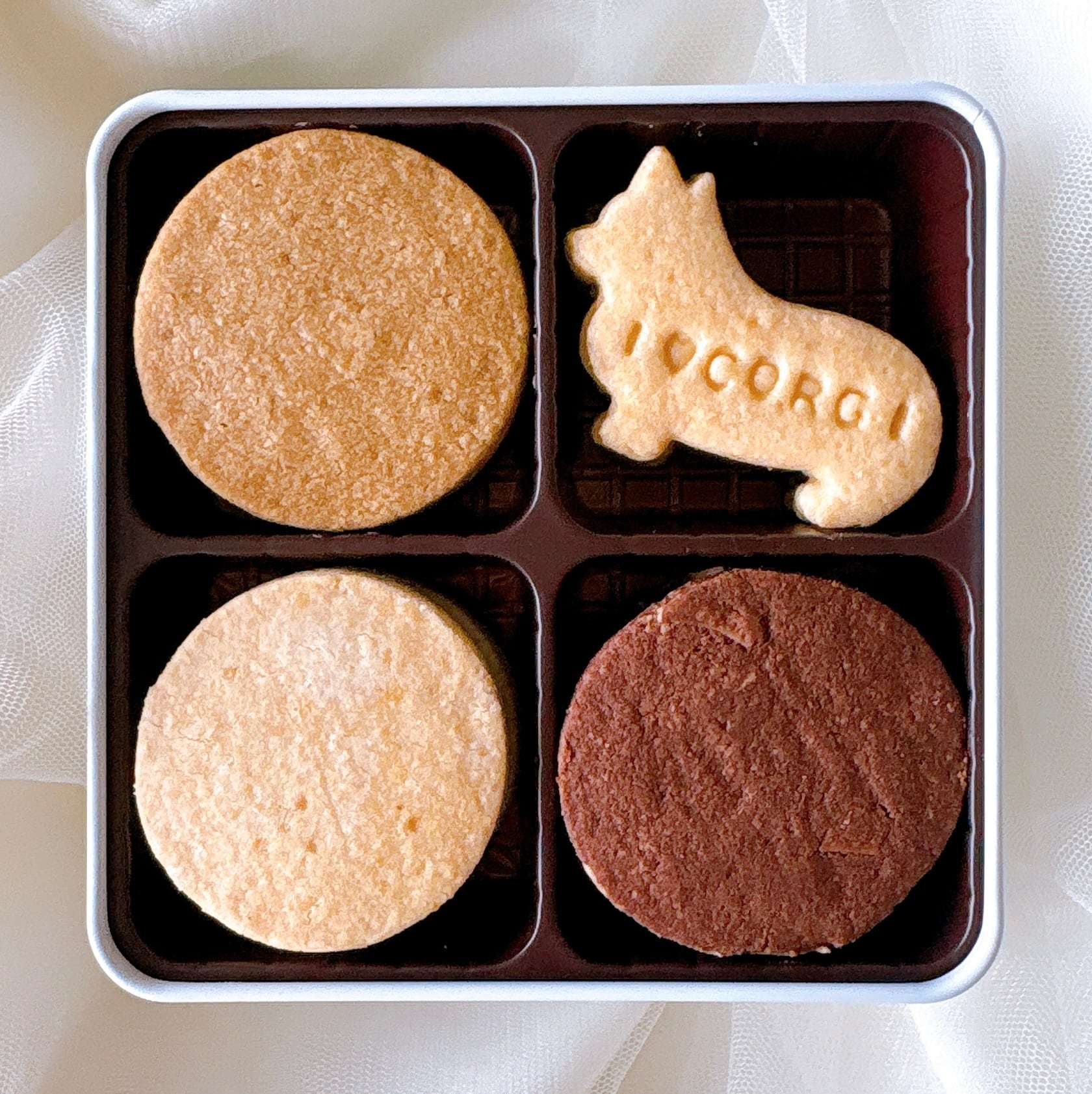 コーギー型クッキー入りコーギークッキー缶