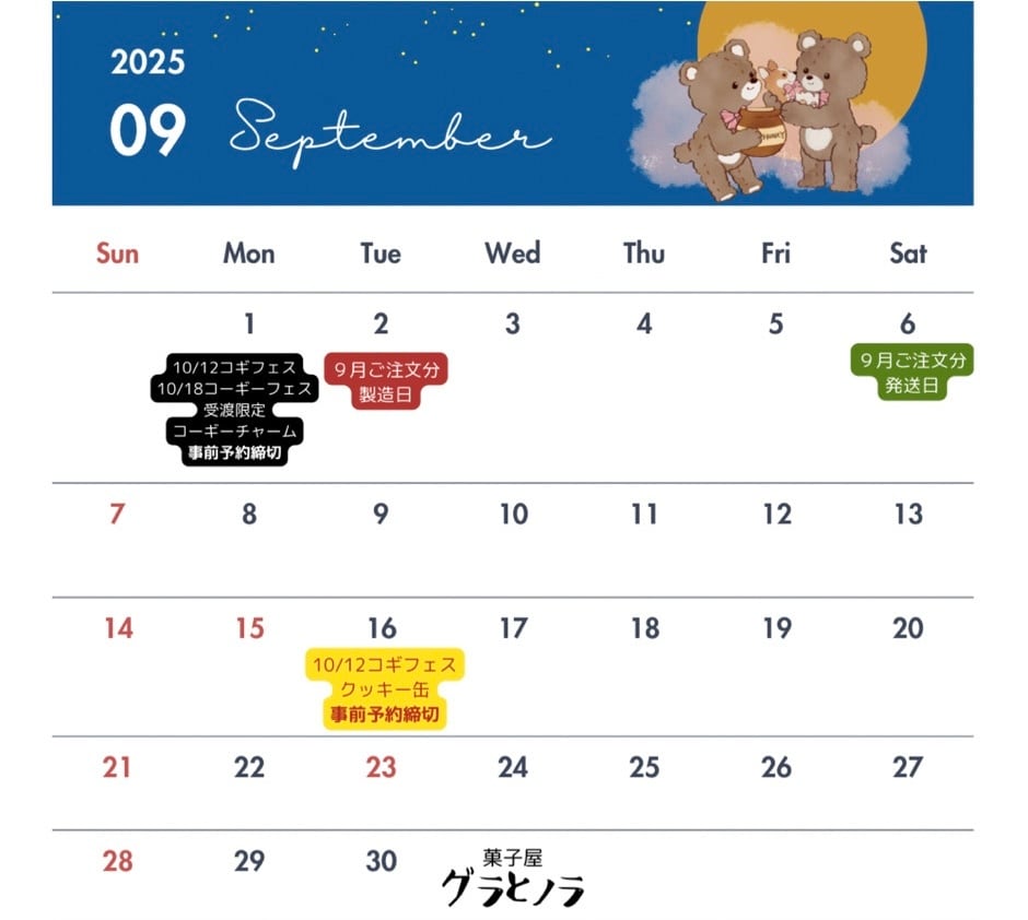 またイベント出店のタイミングにより在庫がある場合はご注文カレンダーの発送期間外で発送させて頂きます。